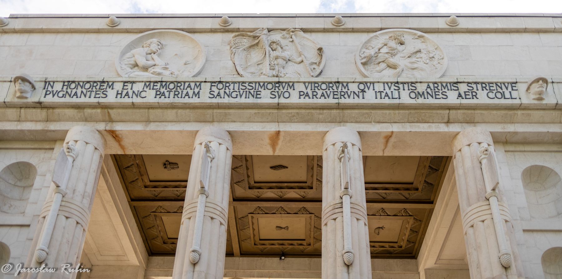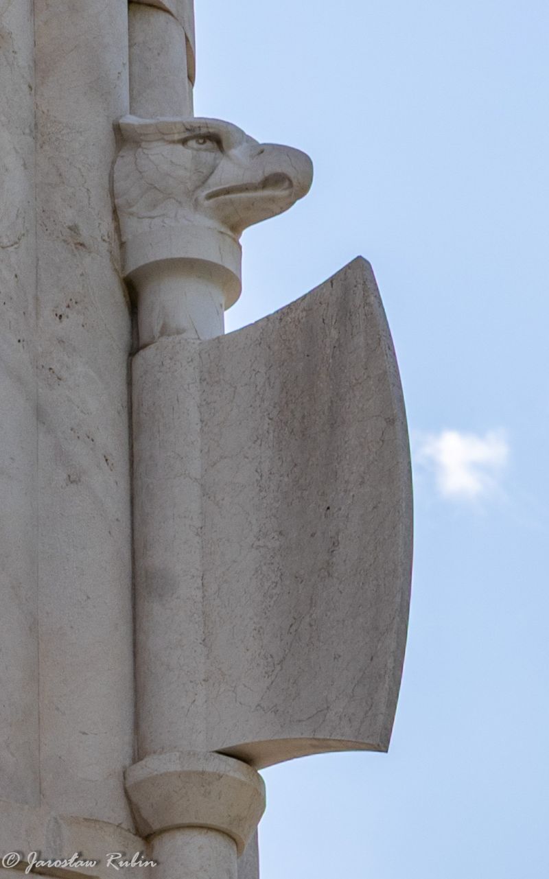 Giovanni Prini (1877–1958), rzeźbiarz. Wyrzeźbił osiem głów żołnierzy w hełmach, a także głowy zwierząt na kolumnach.