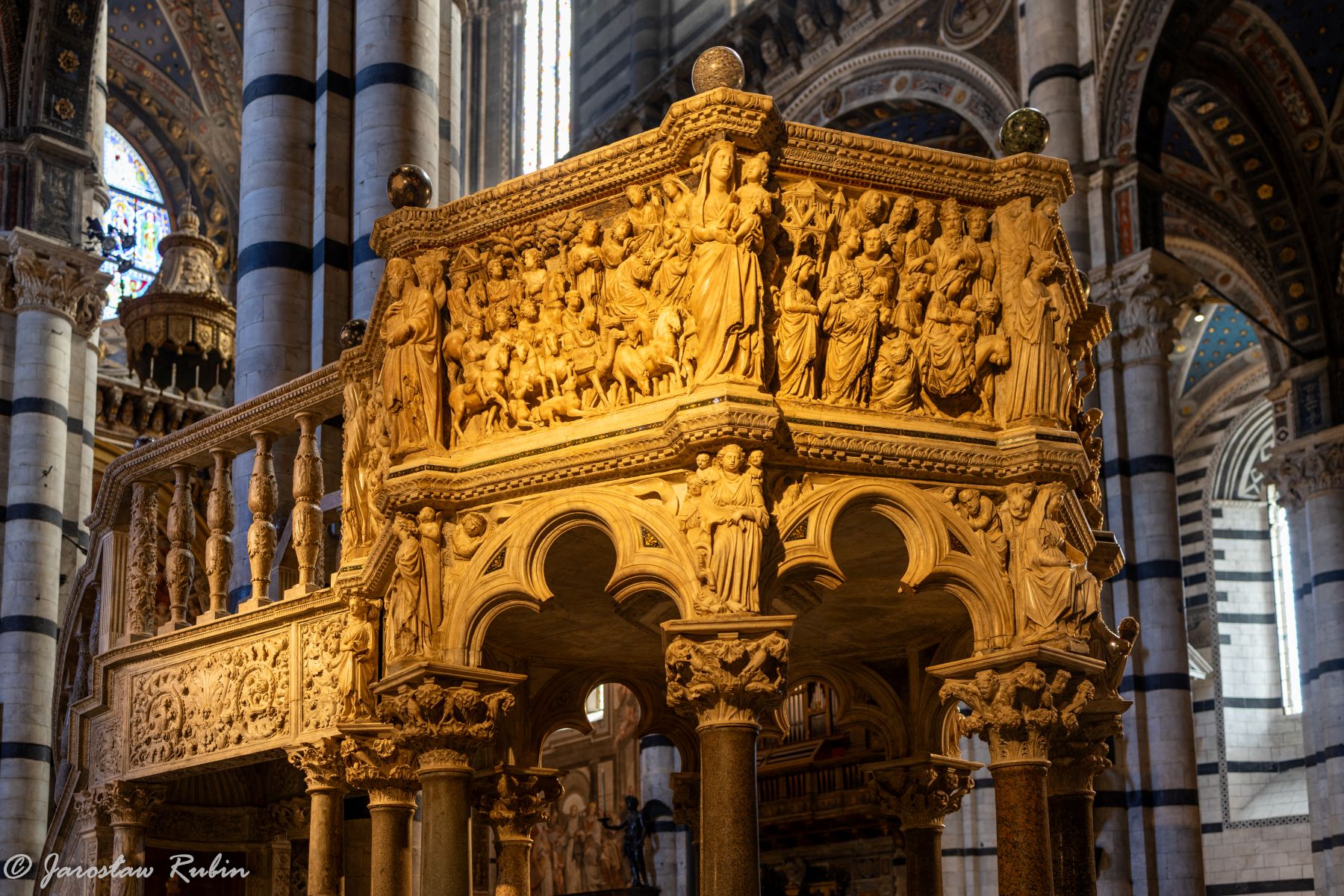 Zwiedzając katedrę trudno oderwać oczu od otaczających nas dział sztuki. Patrząc pod nogi miałem unikatową posadzkę, a wokół rzeźby Nicoli Pisana, Michała Anioła, Donatella i Berniniego oraz przepiękne freski.