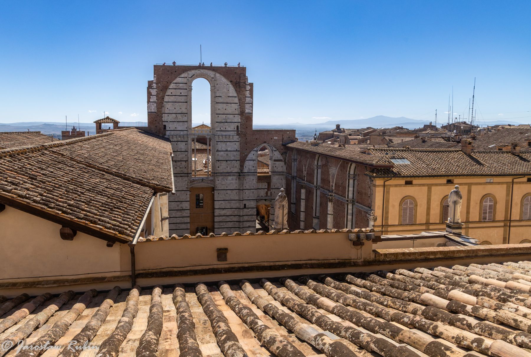 Mieszkając pod Florencją w Villa Castiglione we wrześniu 2025 roku, robiłem wycieczki po Toskanii, a jednym z miejsc, jakie chciałem odwiedzić była Siena, Byłem tam ponad 20 lat temu i nie pamiętałem dobrze tej wizyty, a ponadto chciałem zrobić nowe fotografie. Do Sieny miałem nieco ponad 60 km (około godziny jazdy samochodem), więc wyruszyłem tam zaraz po śniadaniu.