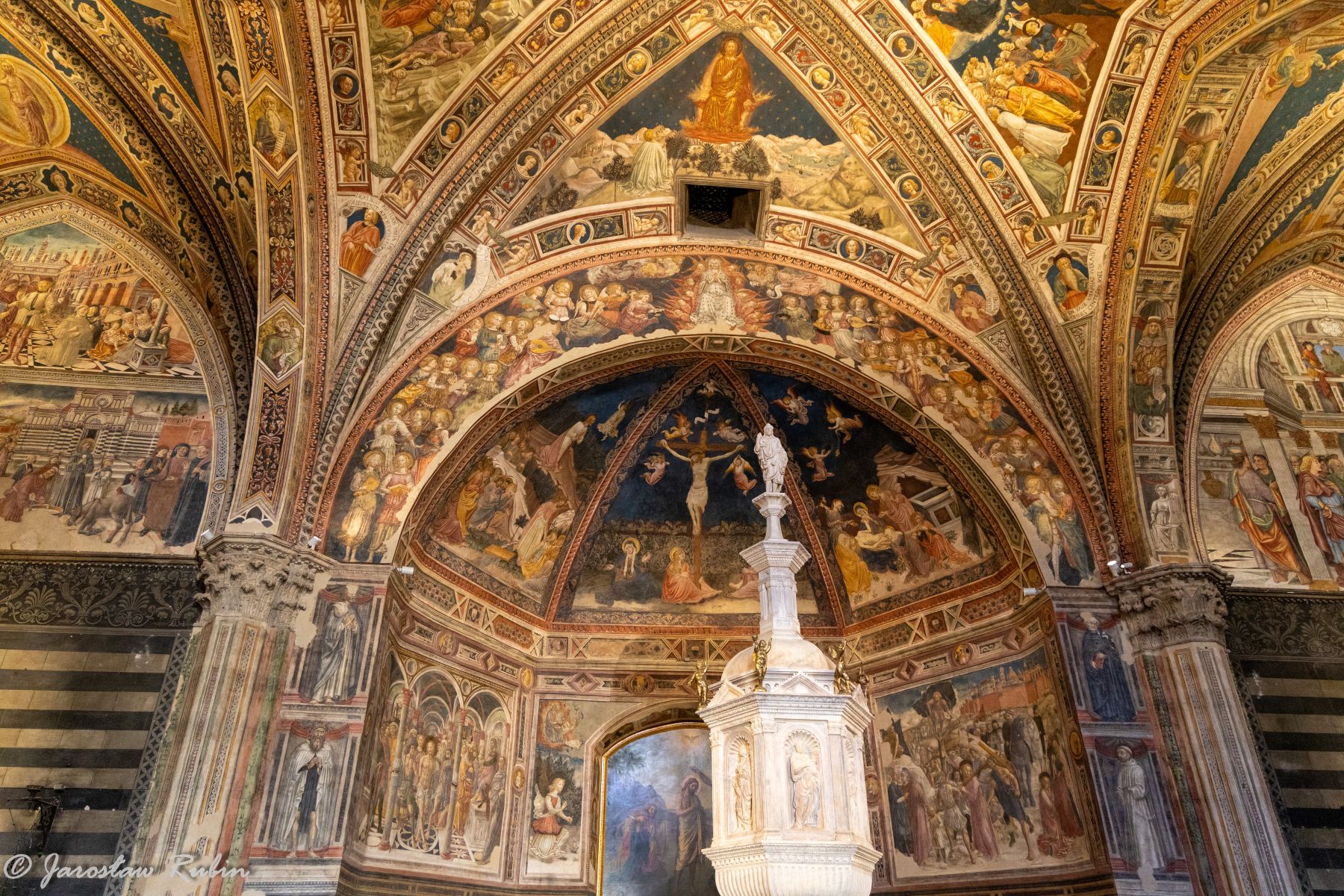 Wewnątrz znajdują się freski Lorenzo di Pietro oraz chrzcielnica z pracami Jacopa della Quercia, Lorenzo Ghibertiego i Donatella.